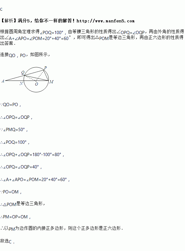 ,以为边作圆的内接正多边形,则这个正多边形是( )![]()