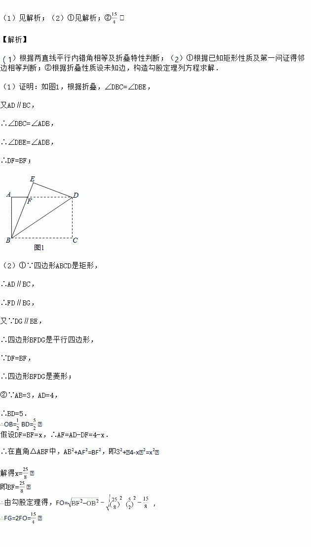 如图1,将一张矩形纸片ABCD沿着对角线BD向上折叠,顶点C落到点E处,BE交AD于点F.