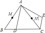 (2)如果M是AB的中点,那么经过上述旋转后,点M转到了AC的中点位置,并在图中用点M′标出来;