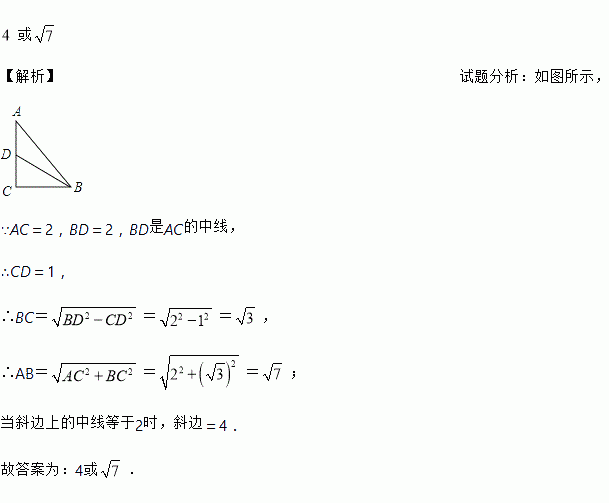 ,则该直角三角形斜边长为__________.