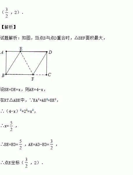 如图(1),在矩形ABCD中,将矩形折叠,使点B落在边AD上,这时折痕与边AD和BC分别交于点E、点F.然后再展开铺平,以B、E、F为顶点的△BEF称为矩形ABCD的“折痕三角形”.如图(2),在矩形ABCD中,AB=2,BC=4,当“折痕△BEF”面积最大时,点E的坐标为 .