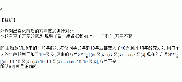 王老师某天给同学们讲了统计中的一个重要的特征数﹣﹣方差的计算及其意义.特别强调方差是用来反映一组数据波动大小的特征数.课后,某数学兴趣小组的五位同学以各自的年龄为一组数据,计算出这组数据的方差是0.2,则10年后该数学兴趣小组五位同学年龄的方差为( )