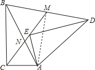 分析 (1)根据旋转的性质,△ABD和△ACE是等腰三角形,设∠BAE=x,根据等腰三角形的性质即可求得∠ACE=∠AEC=∠ABD=∠ADB=90°-$\frac{1}{2}$(α+x),进一步求得∠BMN=∠BAC=α,即可证得△BNM∽△CNA,得出$\frac{BN}{CN}$=$\frac{MN}{AN}$,进而证得△BCN∽△MNA,得出∠ABC=∠AMN,证得AM⊥BD,根据等腰三角形三线合一的性质即可证得结论;