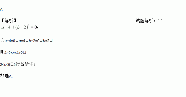 若a,b,c为△ABC的三边长,且满足|a-4|+(b-2)2=0,则c的值可以为( )
