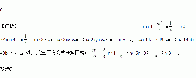 下列多项式中,不能用完全平方公式分解因式的是( )