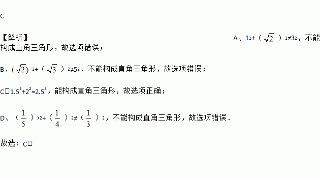 以下列数组作为三角形的三条边长,其中能构成直角三角形的是( )