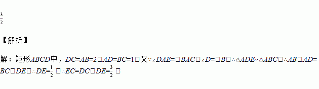 如图,在矩形ABCD中,AB=2,BC=1,点E是DC上一点,∠DAE=∠BAC,则EC的长为________.