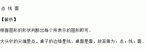 大头针的尖端是________,桌子的边缘是________,桌面是________ .