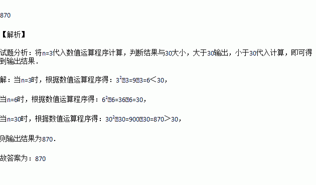如图是一个简单的数值运算程序,当输入n的值为3时,则输出的结果为 .