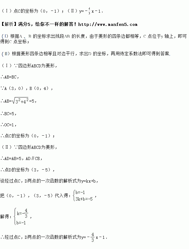 如图,四边形ABCD为菱形,已知A(3,0),B(0, 4).