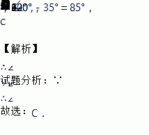 A. 35° B. 95° C. 85° D. 75°