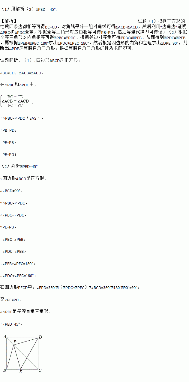 如图,P是正方形ABCD对角线AC上一点,点E在BC上,且PE=PB.