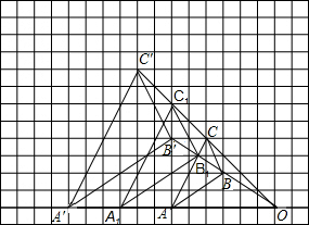 (3)以点O为位似中心,再画一个△A1B1C1,使它与△ABC的位似比等于1.5.