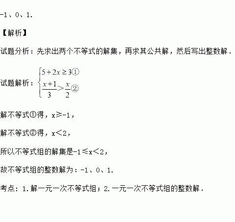 ,并写出不等式组的整数解.