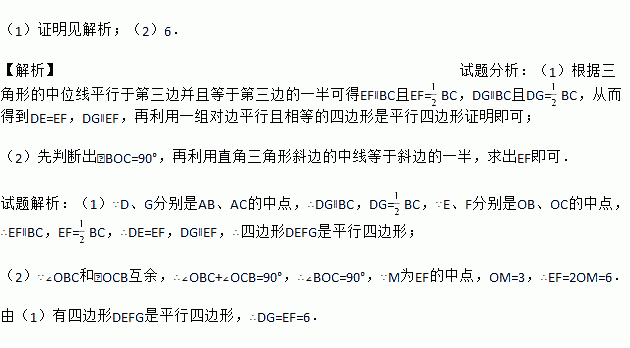 (2)若M为EF的中点,OM=3,∠OBC和∠OCB互余,求DG的长度.