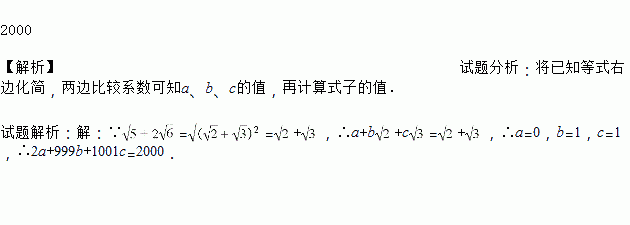 已知a、b、c为有理数,且等式a+b+c=成立,求代数式2a+999b+1001c的值.