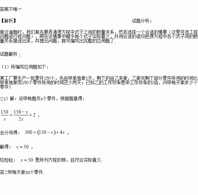 联系实际编拟一道关于分式方程的应用题,要求表述完整,条件充分并写出解答过程。