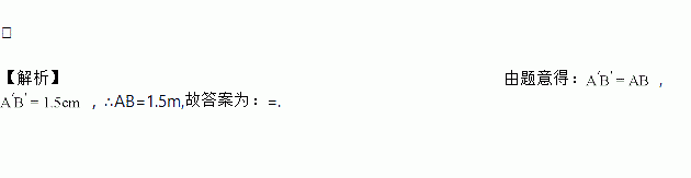 如图,A′B′是阳光照射下篮板上边框AB在地面上的投影,已知A′B′=1.5 m,那么AB________1.5 m.(填“>”“<”或“=”)