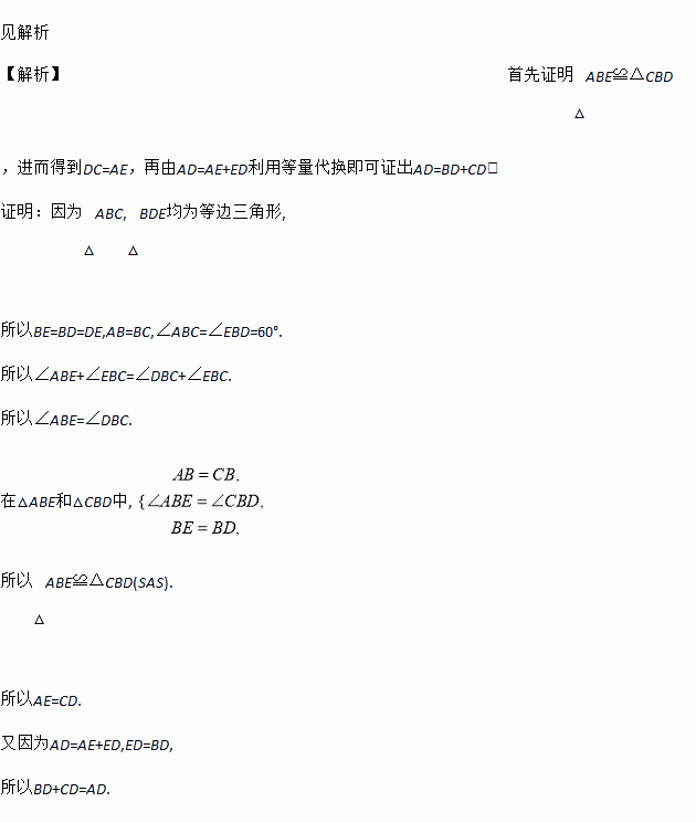 Èçͼ,ÒÑÖª¡÷ABCºÍ¡÷BDE¾ùΪµÈ±ßÈý½ÇÐÎ.ÊÔ˵Ã÷:BD+CD=AD.