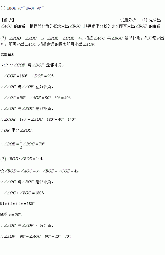 (2)若∠BOD:∠BOE=1:4,求∠AOF的度数.