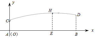 甲、乙两人分别站在相距6米的A、B两点练习打羽毛球,已知羽毛球飞行的路线为抛物线的一部分,甲在离地面1米的C处发出一球,乙在离地面1.5米的D处成功击球,球飞行过程中的最高点H与甲的水平距离AE为4米,现以A为原点,直线AB为x轴,建立平面直角坐标系(如图所示).求羽毛球飞行的路线所在的抛物线的表达式及飞行的最高高度.