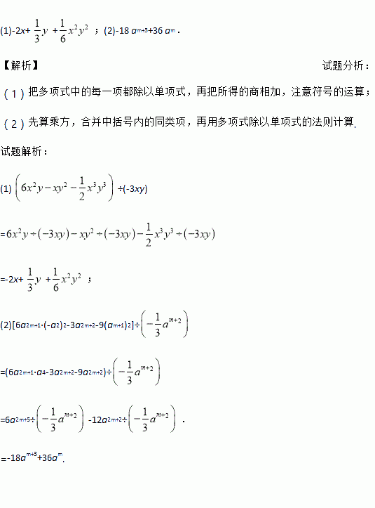 计算:(1) ÷(-3xy);(2)[6 a2m+1·(-a2)2-3 a2m+2-9(am+1) 2]÷.