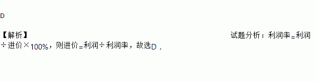 某商店售出一件商品的利润为a元,利润率为20%,则此商品的进价为( )