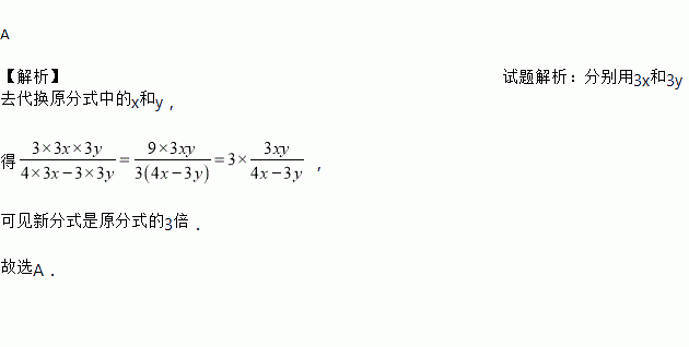A 【解析】试题解析:分别用3x和3y去代换原分式中的x和y, 得, 可见新分式是原分式的3倍. 故选A.