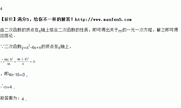 如果二次函数y=x2-4x+n的顶点在x轴上,那么m=_____.