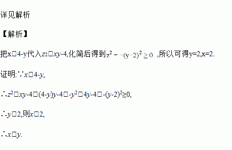 若实数x,y,z满足x=4-y,z2=xy-4,求证x=y.