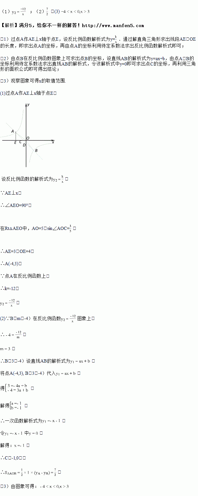 的图象交于第二、四象限内的A,B两点,与x轴交于点C,与y轴交于点D,点B的坐标是(m,﹣4),连接AO,AO=5,sin∠AOC=