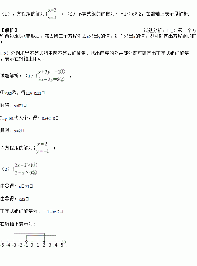 (2)解不等式组并把解集在数轴上表示出来.