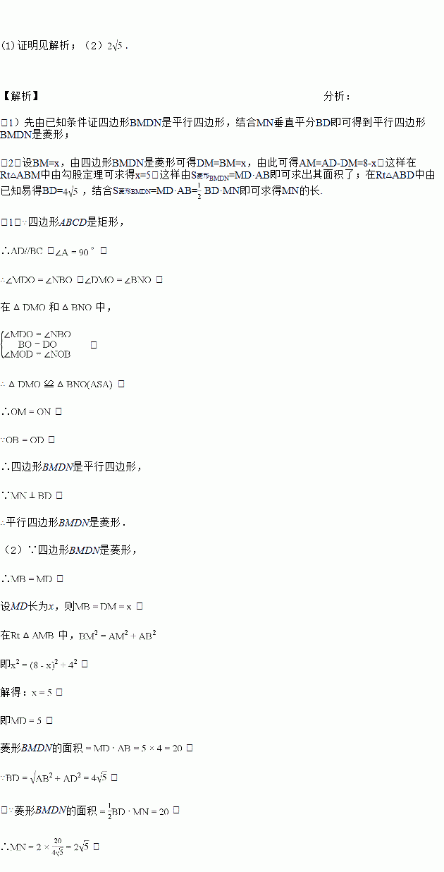 ,求菱形BMDN的面积和对角线MN的长.![]()