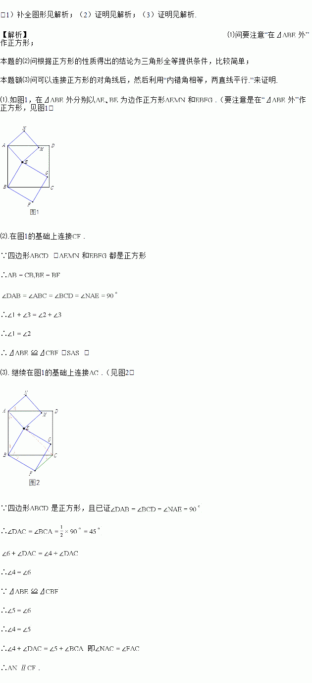 如图,在正方形内任取一点 ,连接,在⊿外分别以为边作正方形和.
