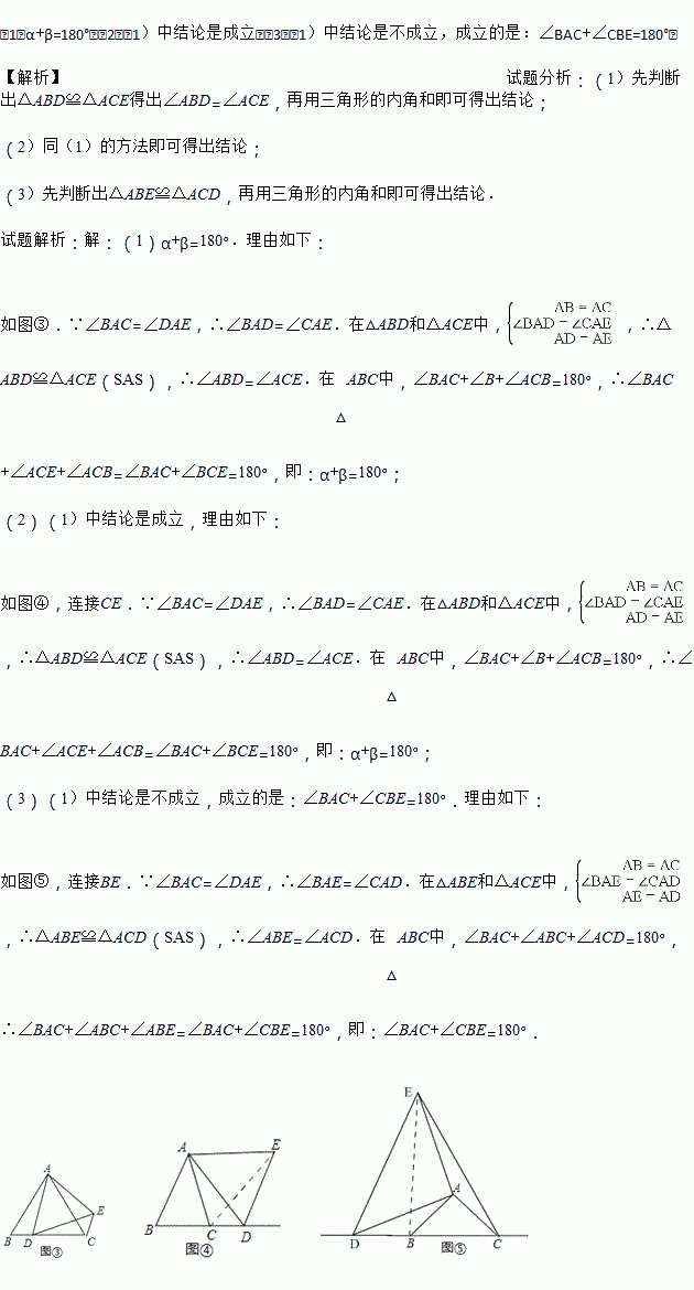 如图③,当点D在线段BC上,如果α,β之间有什么样的关系?请直接写出.