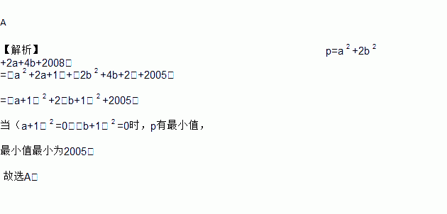 如果多项式p=a2+2b2+2a+4b+2008,则p的最小值是( )