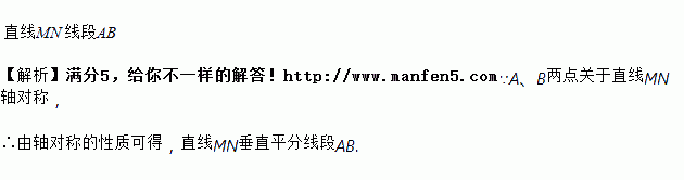 设A、B两点关于直线MN轴对称,则_______垂直平分________.