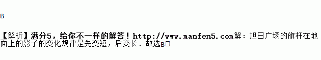 从早上太阳升起的某一时刻开始到晚上,旭日广场的旗杆在地面上的影子的变化规律是( )