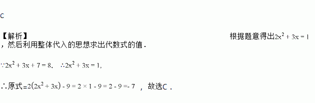 代数式2x2+3x+7的值是8,则代数式4x2+6x-9的值是( )