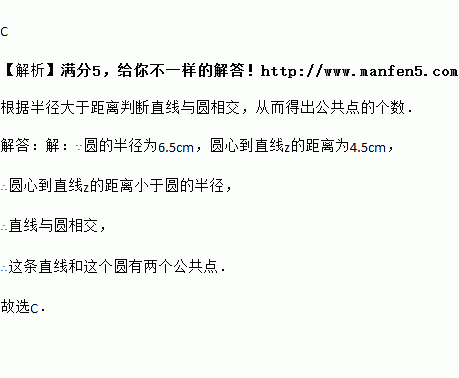 已知圆的半径为6.5cm,圆心到直线z的距离为4.5cm,那么这条直线和这个圆的公共点的个数是( )