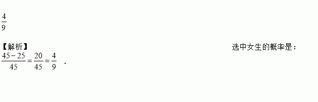 某校九年1班共有45位学生,其中男生有25人,现从中任选一位学生,选中女生的概率是____.