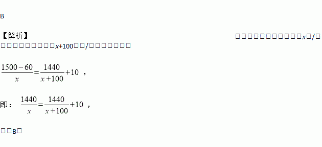 小朱要到距家1500米的学校上学,一天,小朱出发10分钟后,小朱的爸爸立即去追小朱,且在距离学校60米的地方追上了他.已知爸爸比小朱的速度快100米/分,求小朱的速度.若设小朱速度是x米/分,则根据题意所列方程正确的是( )