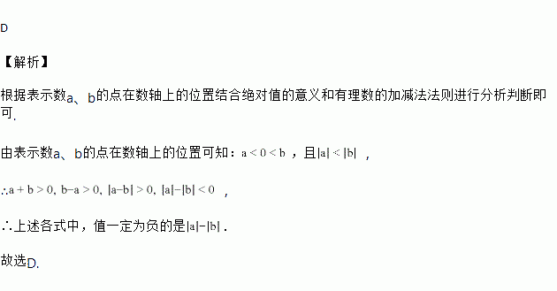 A. a+b B. b-a C. |a-b| D. |a|-|b|