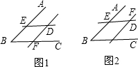 分析:画出符合条件的两种情况,根据平行线性质求出∠EDF=∠ABC或∠EDF=180°-∠ABC,代入求出即可.