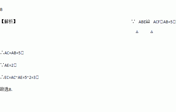 如图,若△ABE≌△ACF,且AB=5,AE=2,则EC的长为( )