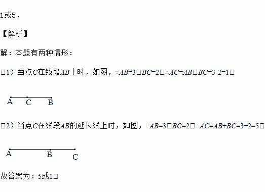 点C在射线AB上,若AB=3,BC=2,则AC为_____.