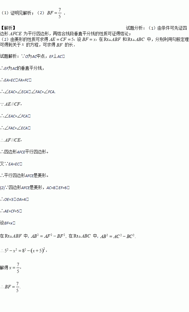 (1)求证:四边形AFCE是菱形;