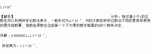 甲型H1N1流感病毒的直径约是0.00000011米,用科学记数法表示为___________米.