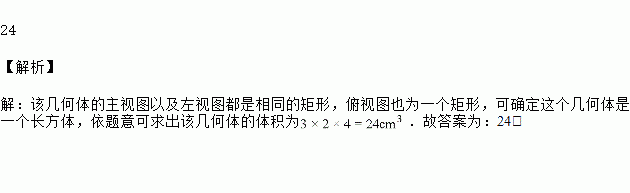 如图,是一个长方体的主视图、左视图与俯视图(单位:cm),根据图中数据计算这个长方体的体积是_____.
