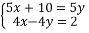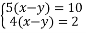 甲、乙两人从A地出发,沿同一方向练习跑步,如果甲让乙先跑10米,则甲跑5秒就可追上乙,如果甲让乙先跑2秒,那么甲跑4秒就能追上乙,设甲、乙每秒钟分别跑米和y米,则可列方程组为
